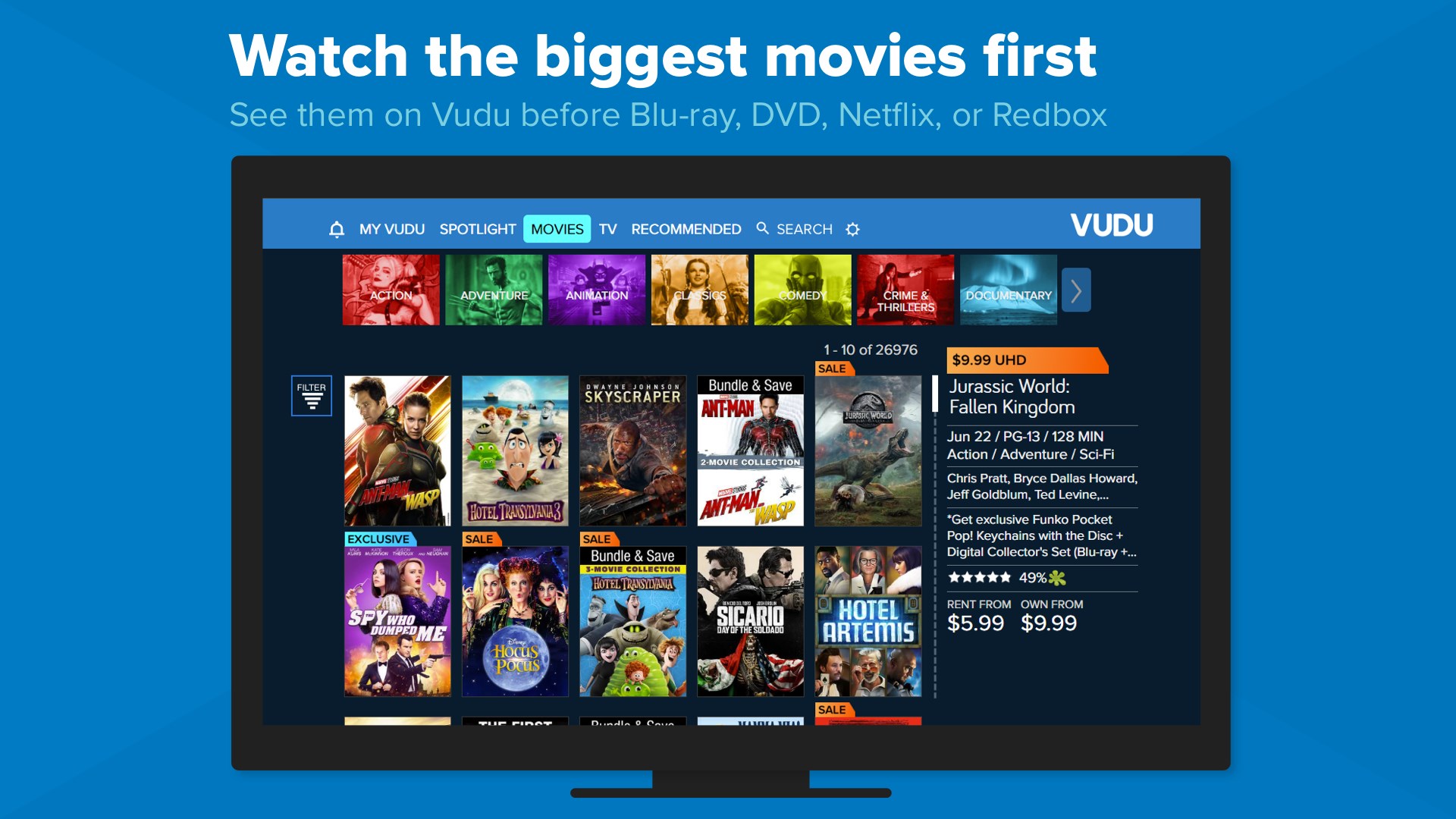 Get our free Vudu app and watch your favorite movies and TV shows anytime anywhere. We have a lot to offer. Download Vudu from the app store.